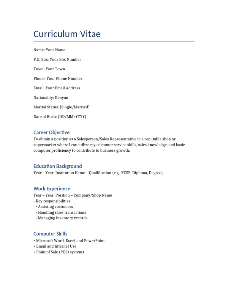 Year – Year: Institution Name – Qualification (e.g., KCSE, Diploma, Degree)