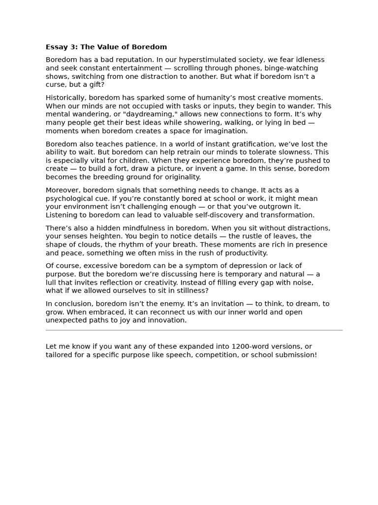 In conclusion, boredom isn’t the enemy. It’s an invitation — to think, to dream, to
