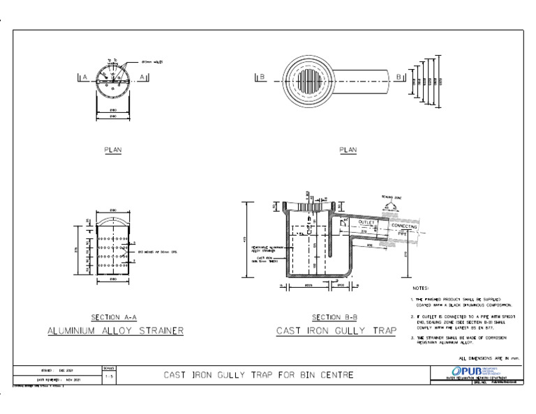 1 : 5 CAST IRON GULLY TRAP FOR BIN CENTRE WATER RECLAMATION (NETWORK) DEPARTMENT