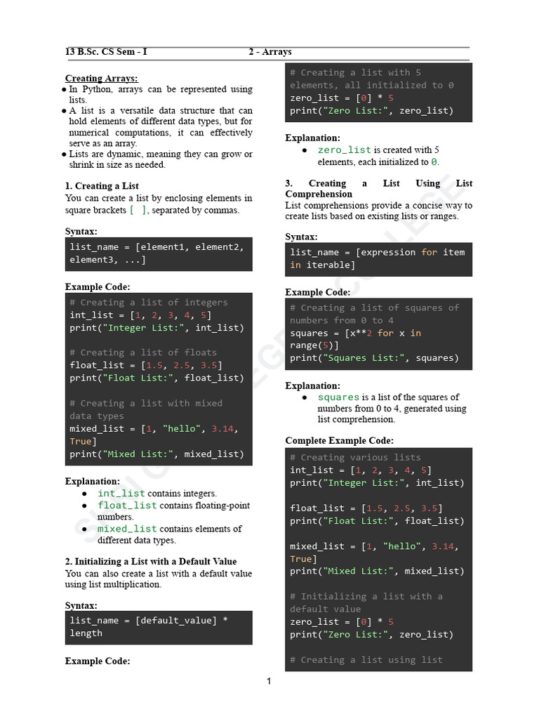 CS Sem - I 2 - Arrays