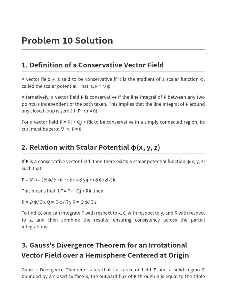 3. Gauss's Divergence Theorem for an Irrotational