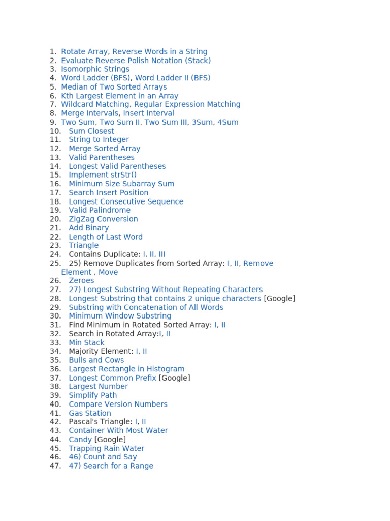 Some are textbook algorithms (reverse string, substring, etc).
