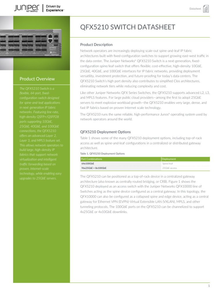 the data center. The Juniper Networks® QFX5210 Switch is a next-generation, fixed-