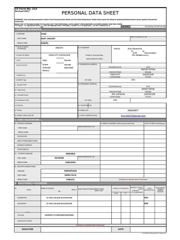 PERSONAL DATA SHEET