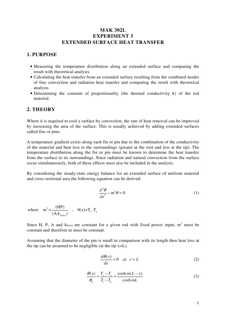 MAK 302L EXPERIMENT 3 EXTENDED SURFACE HEAT TRANSFER 1.