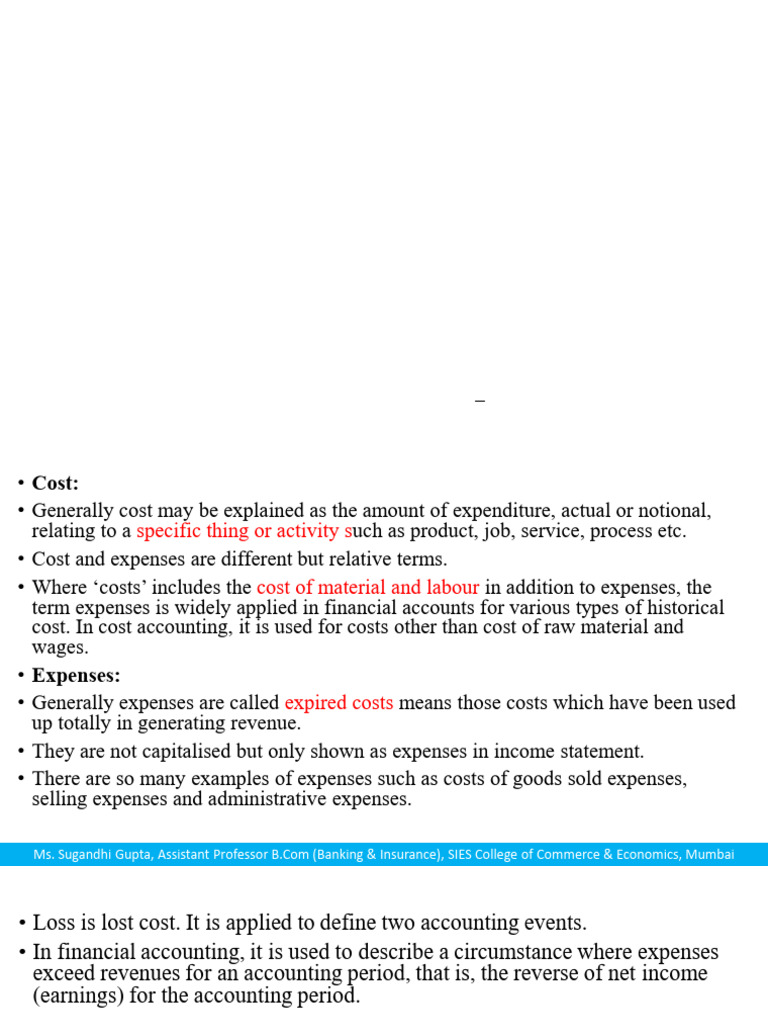 • Cost and expenses are different but relative terms.