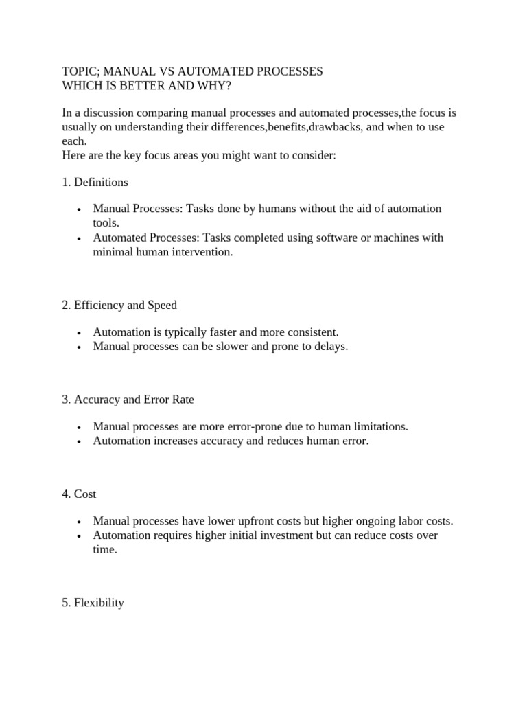 TOPIC; MANUAL VS AUTOMATED PROCESSES