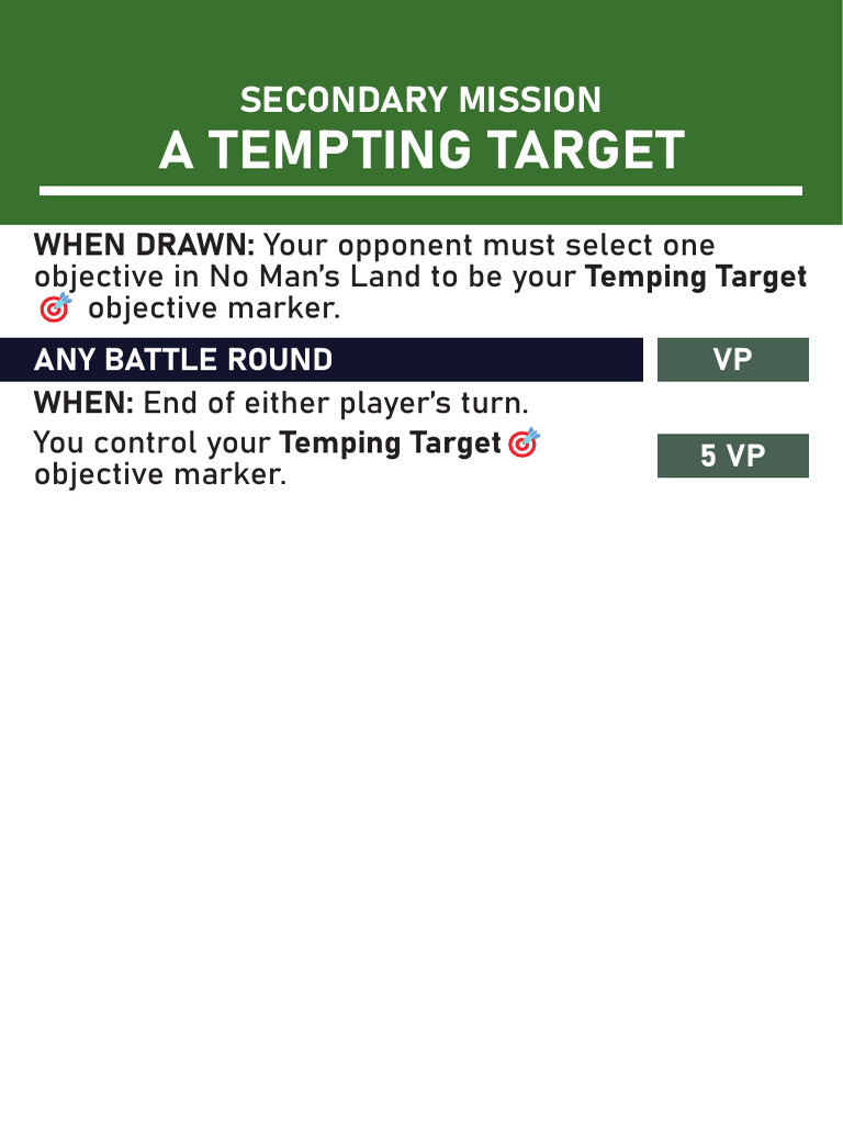 objective in No Man’s Land to be your Temping Target