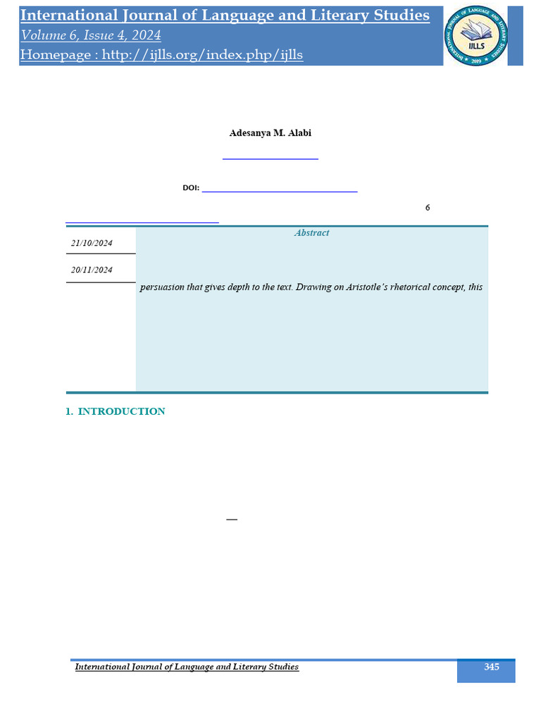 Using Principles of Rhetoric. International Journal of Language and Literary Studies. 6(4).345-363.