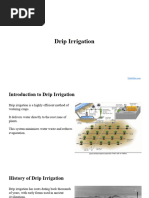 The document provides an overview of drip irrigation, including its definition, benefits, and components like emitters, filters, and valves. It discusses the evolution of drip irrigation from traditional methods to modern systems, highlighting its efficiency in water and nutrient delivery, especially in water-scarce regions. Additionally, it addresses common problems associated with drip irrigation and their solutions, emphasizing the importance of proper management and maintenance for optimal performance.
