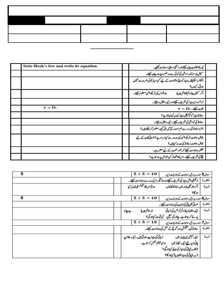 1 State Hook’s law and write its equation. کہاکاقوننایبنےئجیکاورایکساسحیباسمواتےیھکل۔ 1
