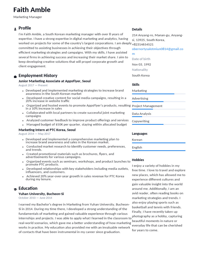 I'm Faith Amble, a South Korean marketing manager with over 8 years of 214 Anyang-ro, Manan-gu, Anyang-
