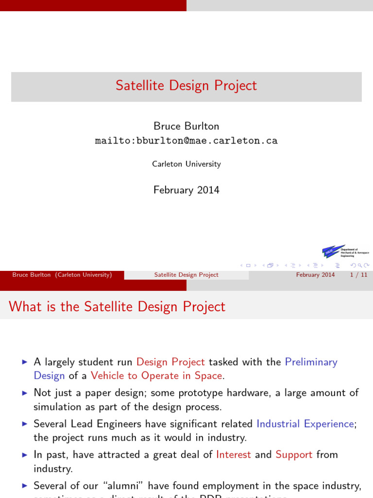 Bruce Burlton (Carleton University) Satellite Design Project February 2014 2 / 11