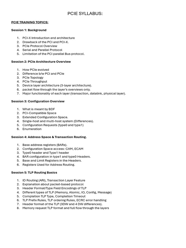 PCIE TRAINING TOPICS: