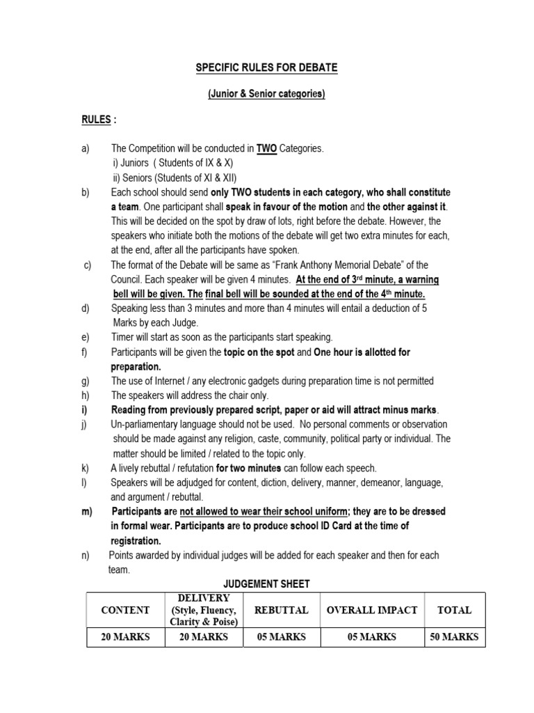 SPECIFIC RULES FOR DEBATE