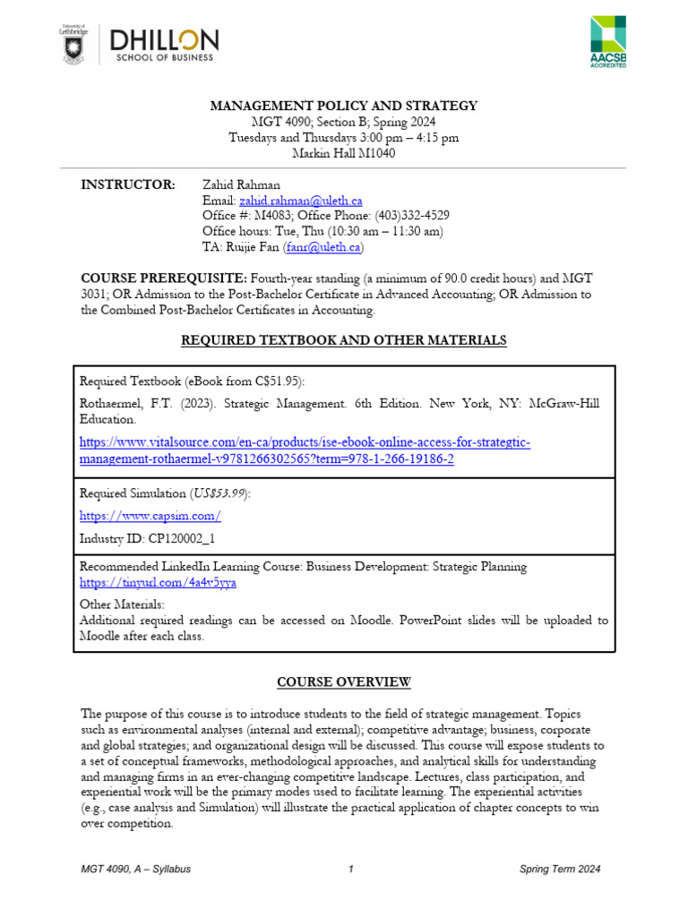 MGT 4090, A – Syllabus 2 Spring Term 2024