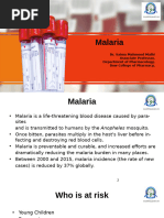 Malaria is a parasitic disease caused by Plasmodium species transmitted by