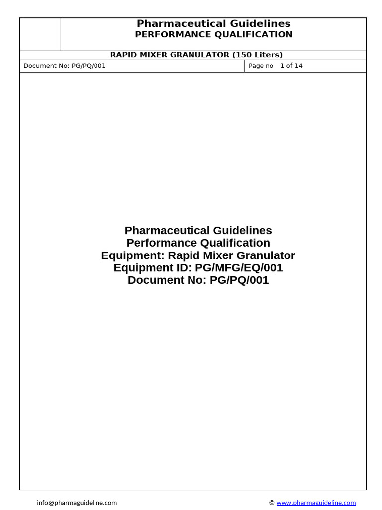 Mixer Granulator. The performance qualification is an essential part of GMP