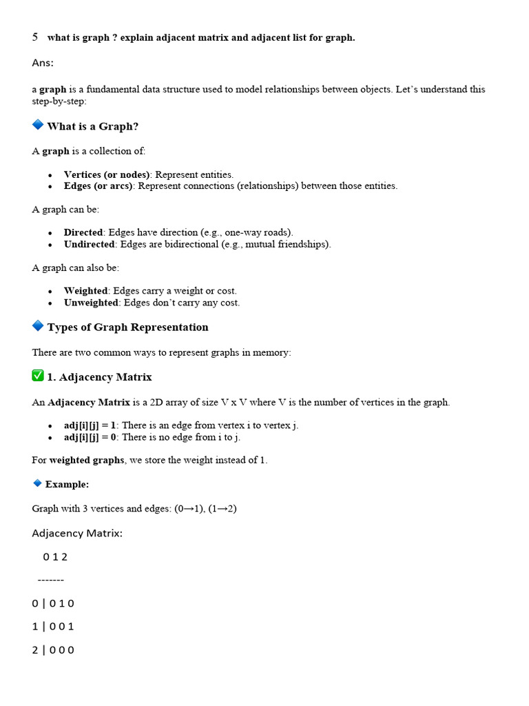 5 what is graph ? explain adjacent matrix and adjacent list for graph.