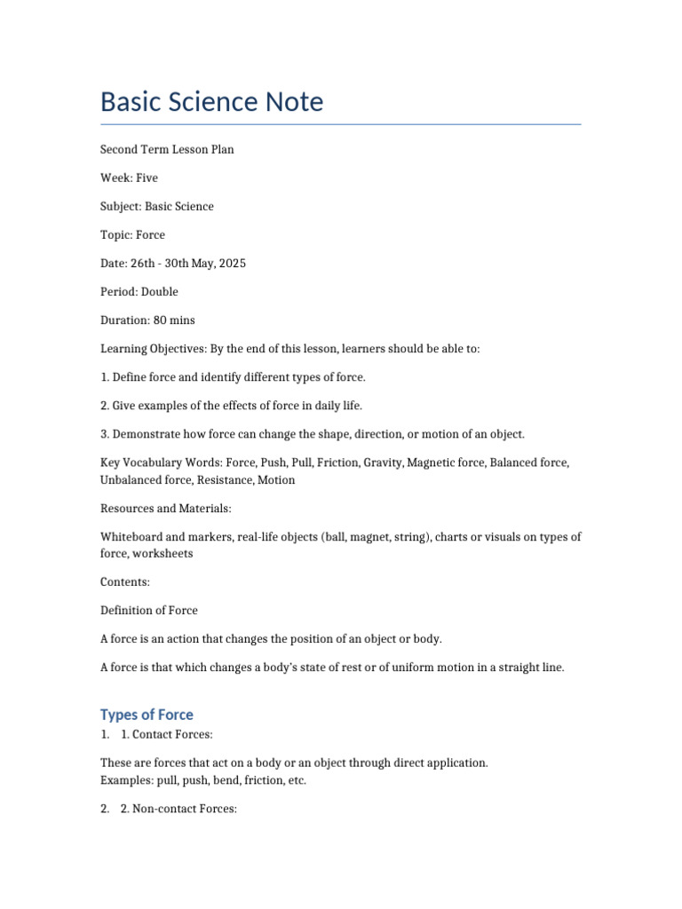 Group 2: Identify and explain the types of force (push, pull, friction, magnetic, gravitational)