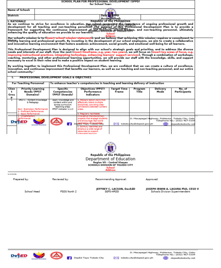 SCHOOL PLAN FOR PROFESSIONAL DEVELOPMENT (SPPD)