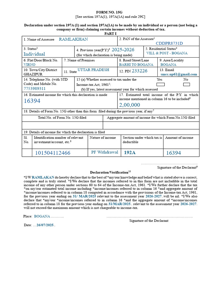 Code) and Mobile No. Income-tax Act, 1961 : 5