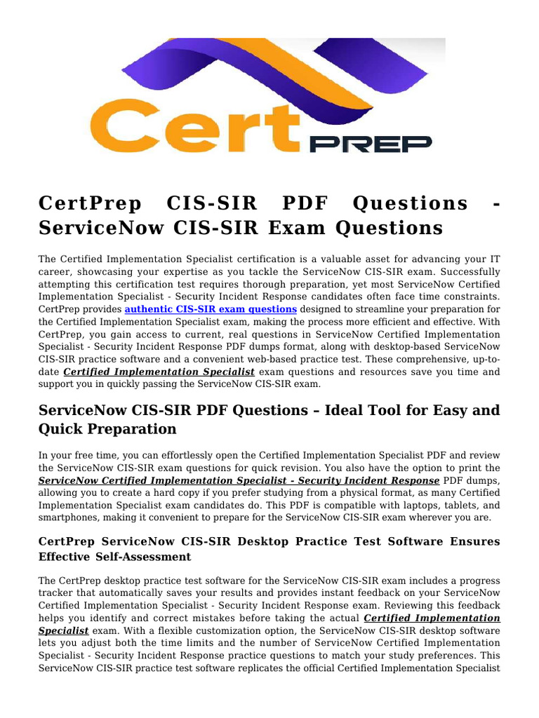 CertPrep ServiceNow CIS-SIR Desktop Practice Test Software Ensures