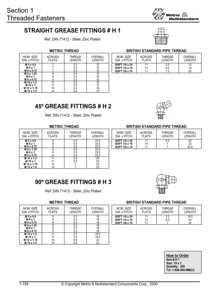 STRAIGHT GREASE FITTINGS # H 1