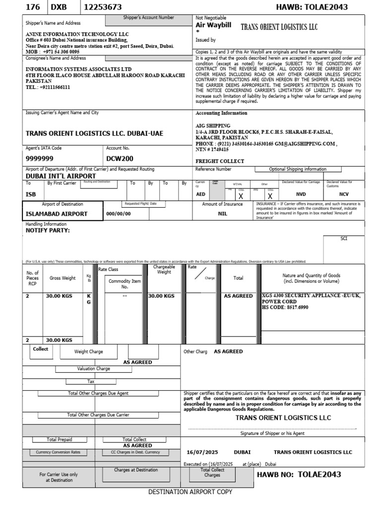 176 DXB 12253673 HAWB: TOLAE2043