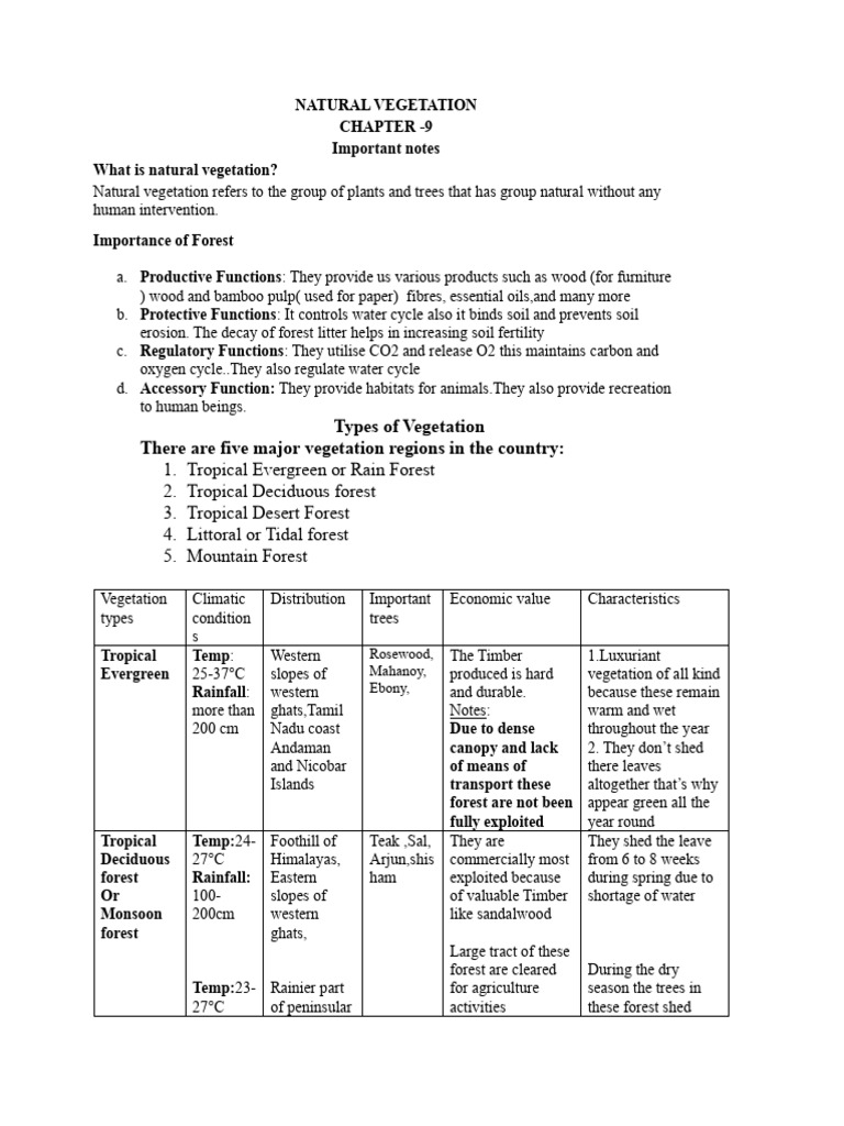 Vegetation Climatic Distribution Important Economic value Characteristics