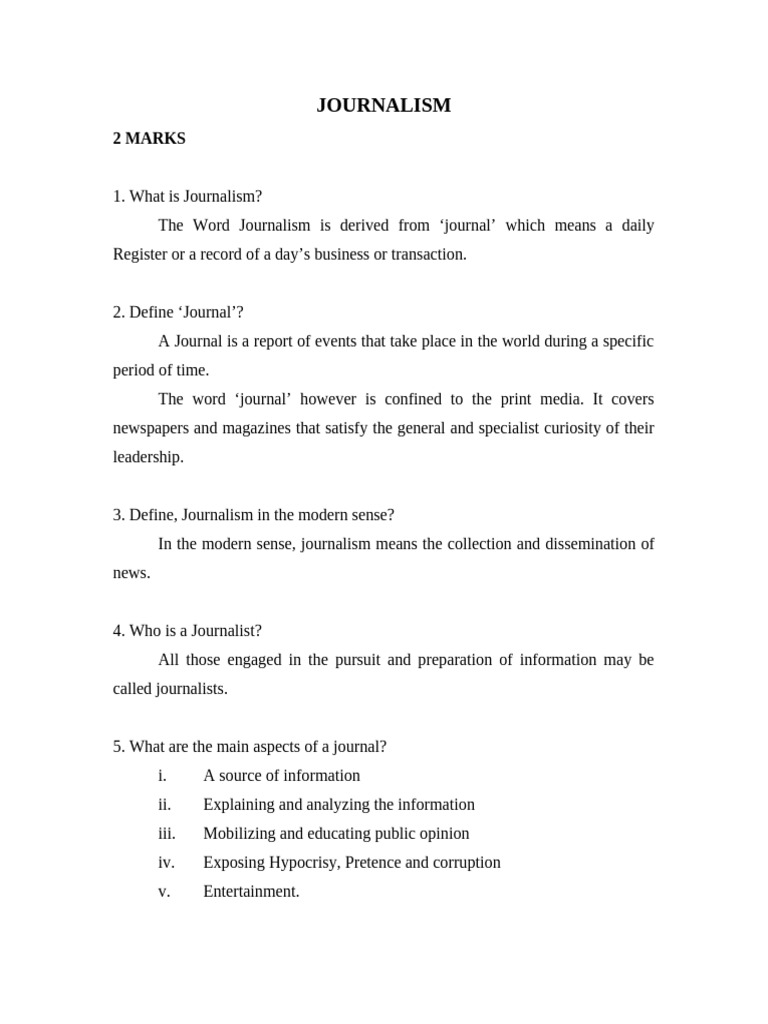 3. Define, Journalism in the modern sense?