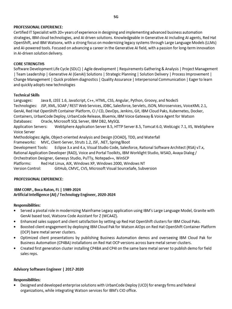 strategies, IBM cloud technologies, and AI driven solutions. Knowledgeable in Generative AI including AI agents, Red Hat
