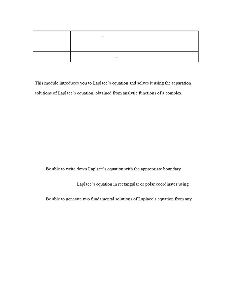 2. Be able to solve Laplace’s equation in rectangular or polar coordinates using