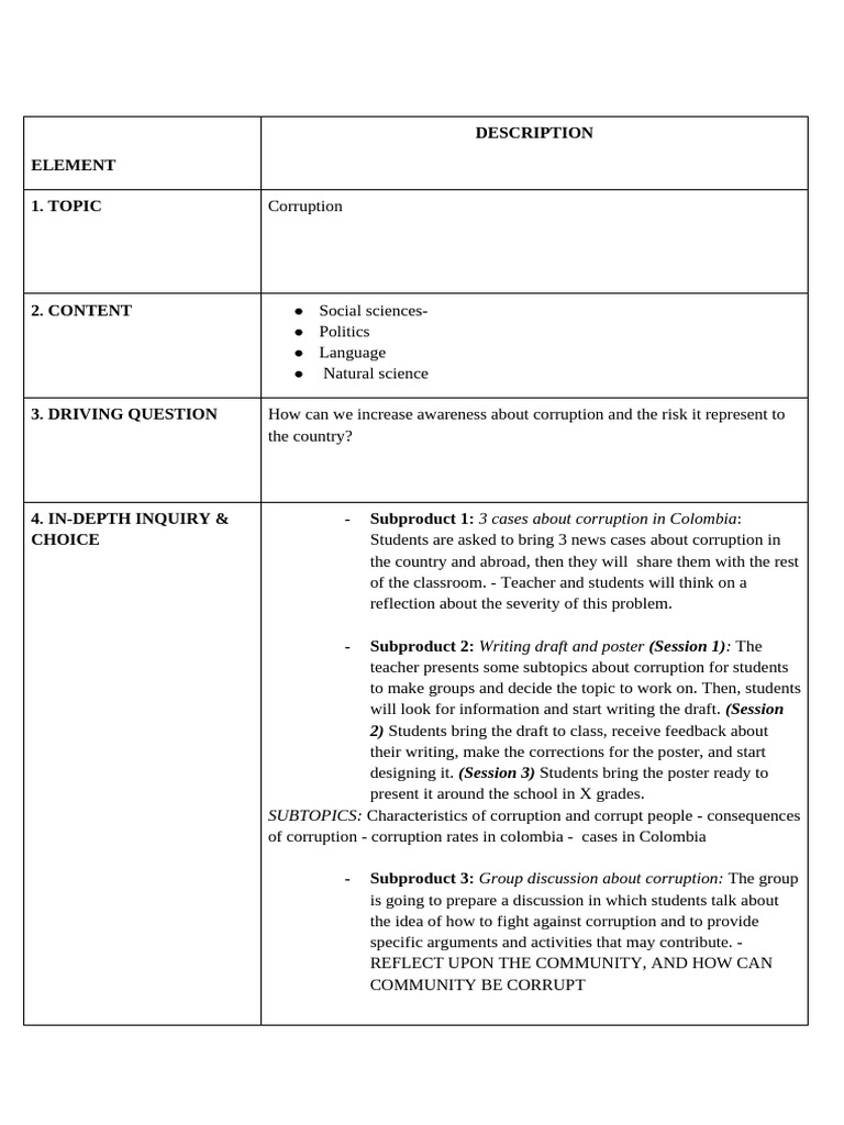 3. DRIVING QUESTION How can we increase awareness about corruption and the risk it represent to