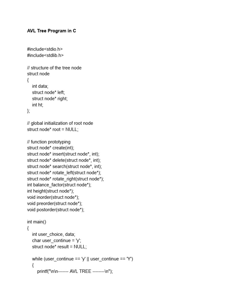 AVL Tree Program in C