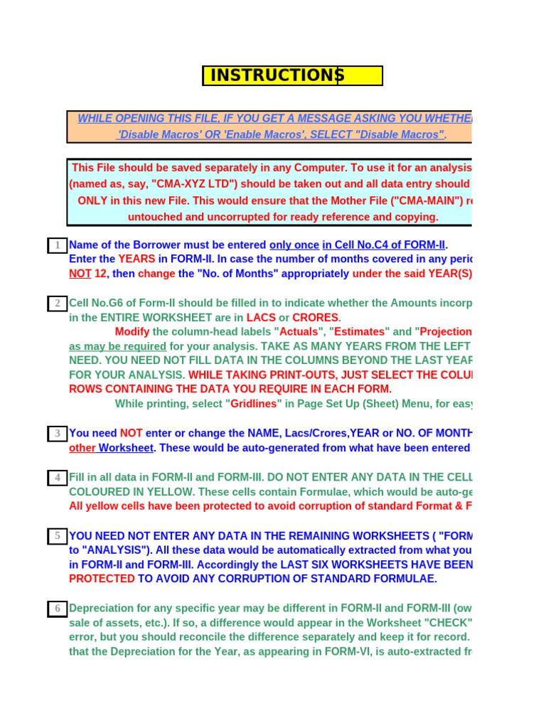 1 Name of the Borrower must be entered only once in Cell No.C4 of FORM-II.