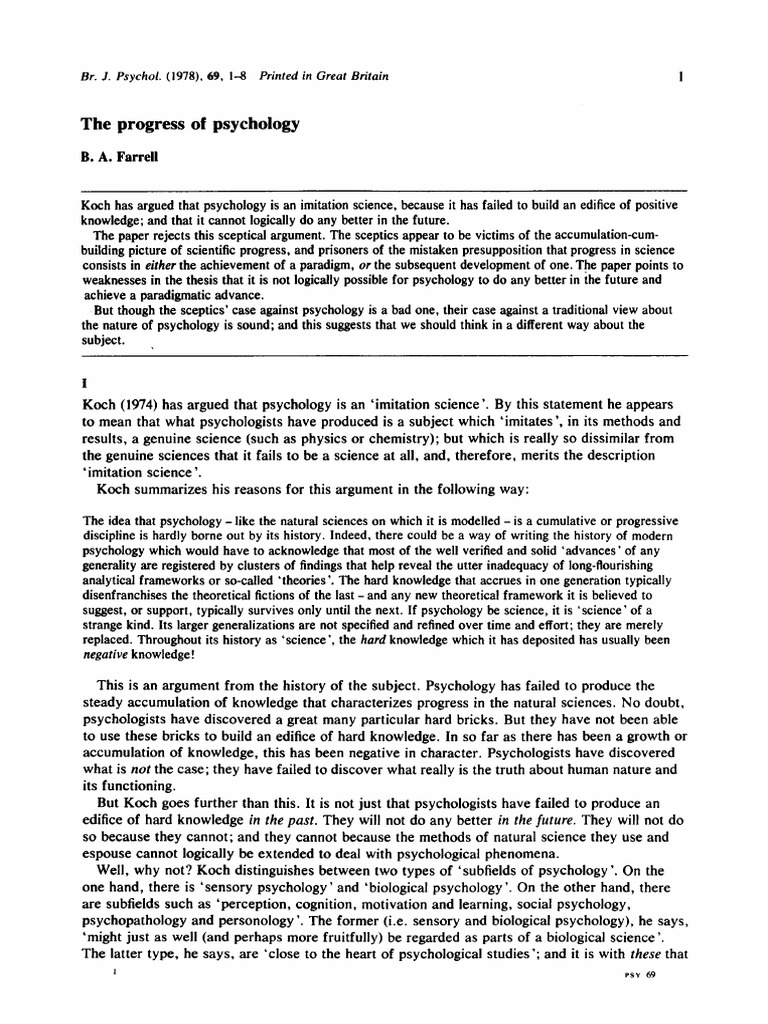 Koch (1974) has argued that psychology is an ‘imitation science’. By this statement he appears