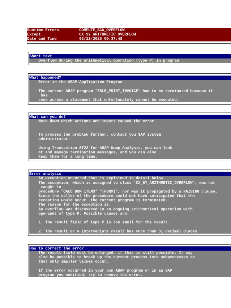 The termination is caused because exception "CX_SY_ARITHMETIC_OVERFLOW"