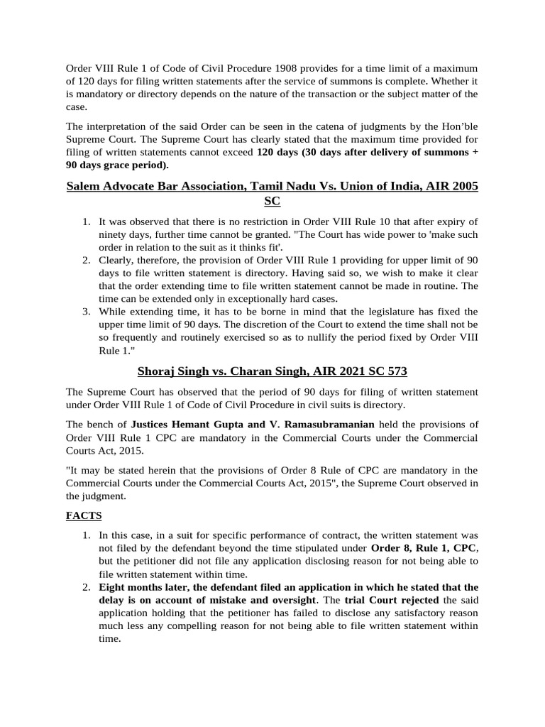 days to file written statement is directory. Having said so, we wish to make it clear