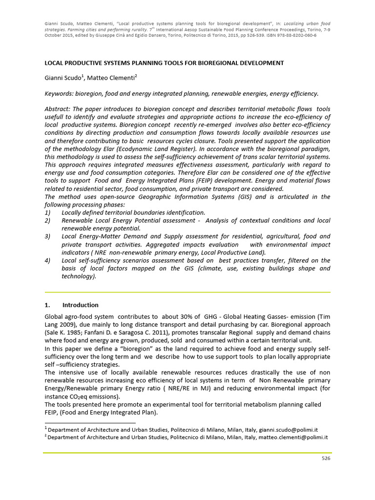 Gianni Scudo, Matteo Clementi, “Local productive systems planning tools for bioregional development”