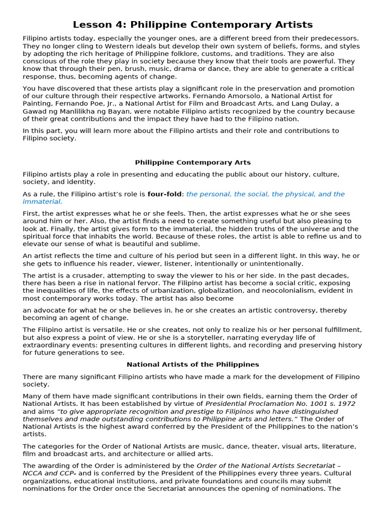 Lesson 4: Philippine Contemporary Artists