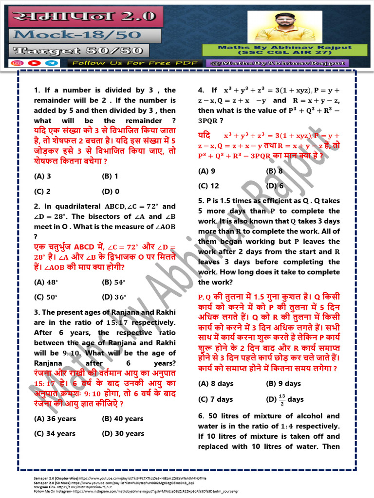 (C) 𝟓𝟎∘ (D) 𝟑𝟔∘ 𝐏, 𝐐 की तुलना में 1.5 गुना कुशल है। Q दकसी