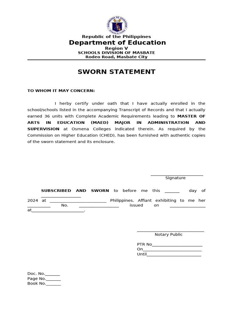SWORN STATEMENT