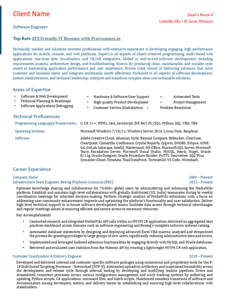 Top Rate ATS Friendly IT Resume with Proresumes.io
