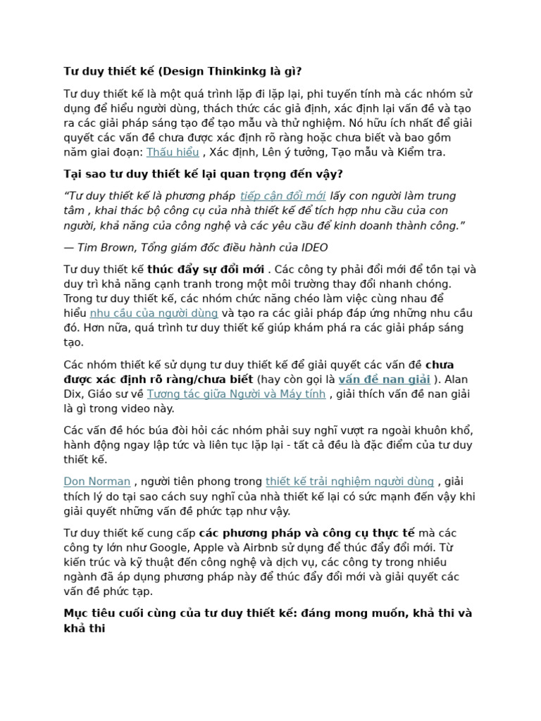 đó. Hơn nữa, quá trình tư duy thiết kế giúp khám phá ra các giải pháp sáng
