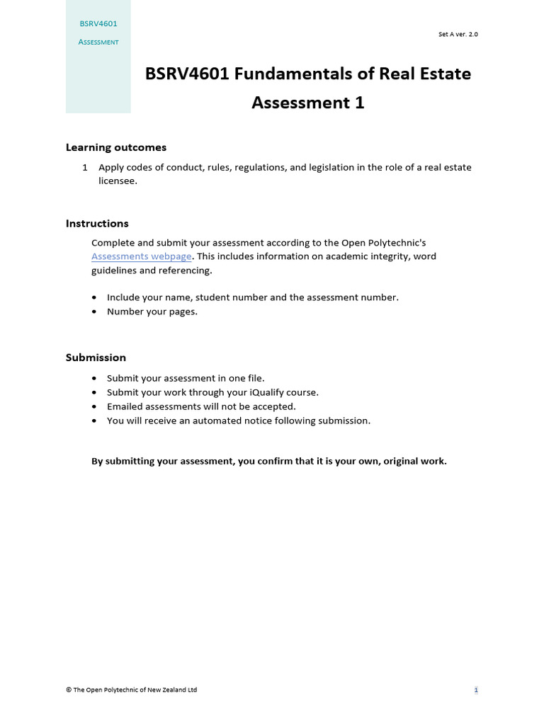 1 BSRV4601 Fundamentals of Real Estate