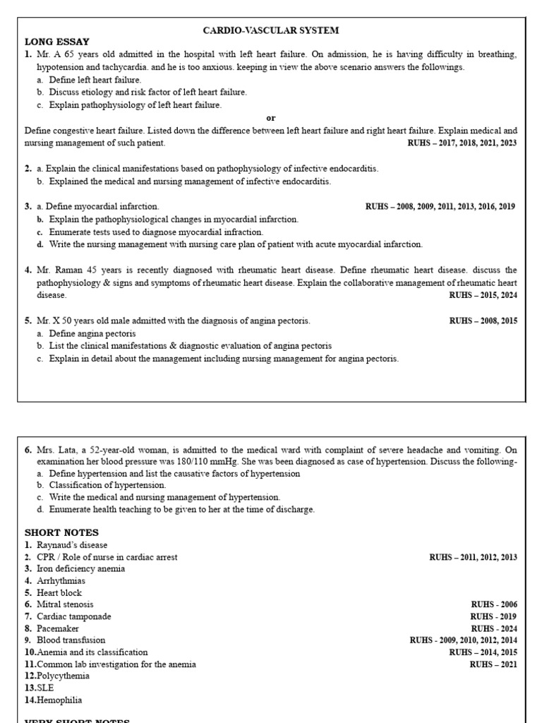 5. Mr. X 50 years old male admitted with the diagnosis of angina pectoris. RUHS – 2008, 2015