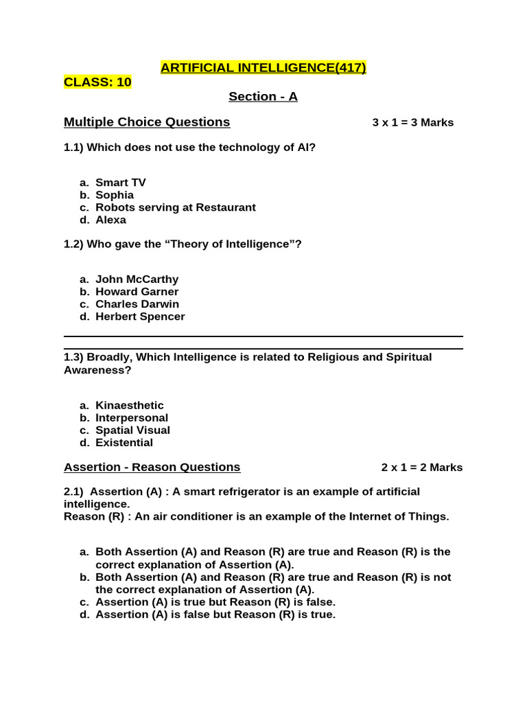 2.1) Assertion (A) : A smart refrigerator is an example of artificial