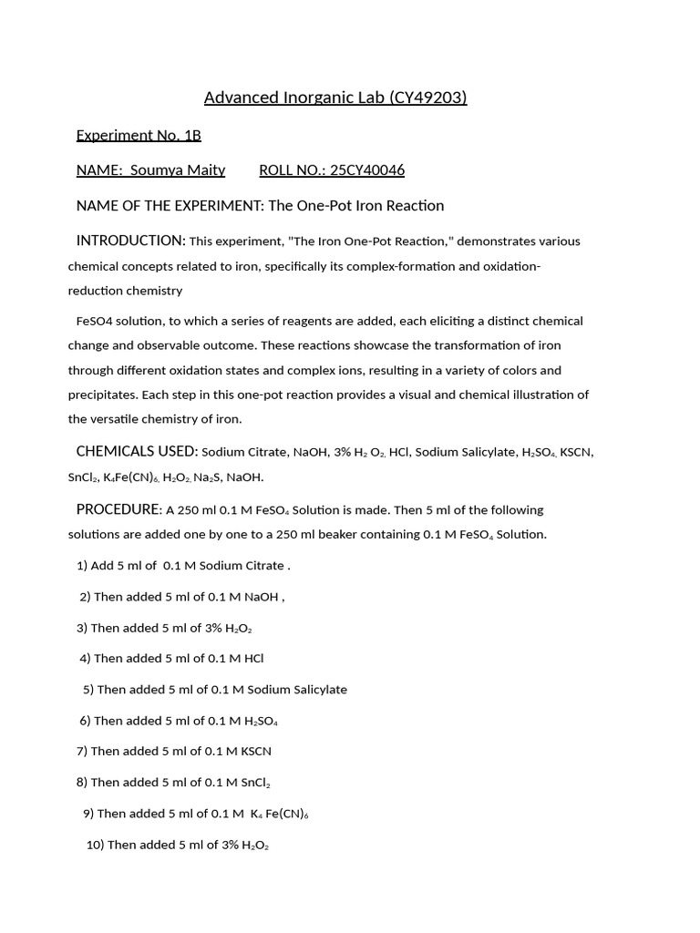 INTRODUCTION: This experiment, "The Iron One-Pot Reaction," demonstrates various