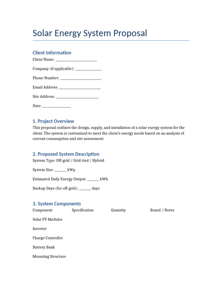 This proposal outlines the design, supply, and installation of a solar energy system for the